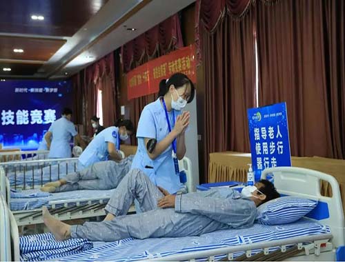 保育師項(xiàng)目決賽中,選手們動(dòng)作輕柔且技巧嫻熟規(guī)范,每一個(gè)環(huán)節(jié)的基本功都非常穩(wěn)定扎實(shí)。養(yǎng)老護(hù)理員項(xiàng)目中參賽選手們憑借熟練的護(hù)理技術(shù),借助相應(yīng)的護(hù)理設(shè)備,動(dòng)作協(xié)調(diào)地從生活照料、技術(shù)護(hù)理、康復(fù)護(hù)理等方面展示養(yǎng)老護(hù)理技能,每一個(gè)環(huán)節(jié)都用溫馨的語(yǔ)言進(jìn)行溝通。